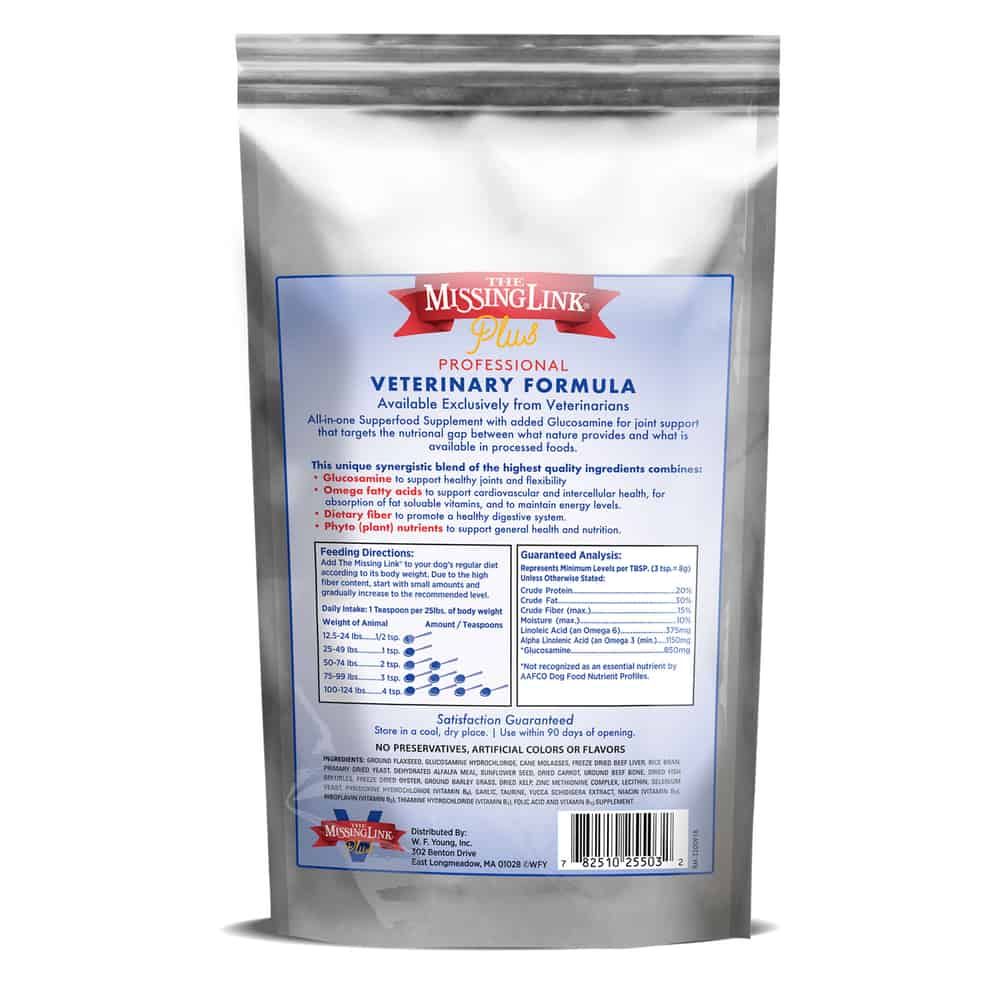 The Missing Link® Professional Veterinary Formula Canine Plus includes a higher level of Glucosamine than The Missing Link Original formulas to support healthy joints and flexibility, plus support skin & coat, sustained energy, and healthy digestion.