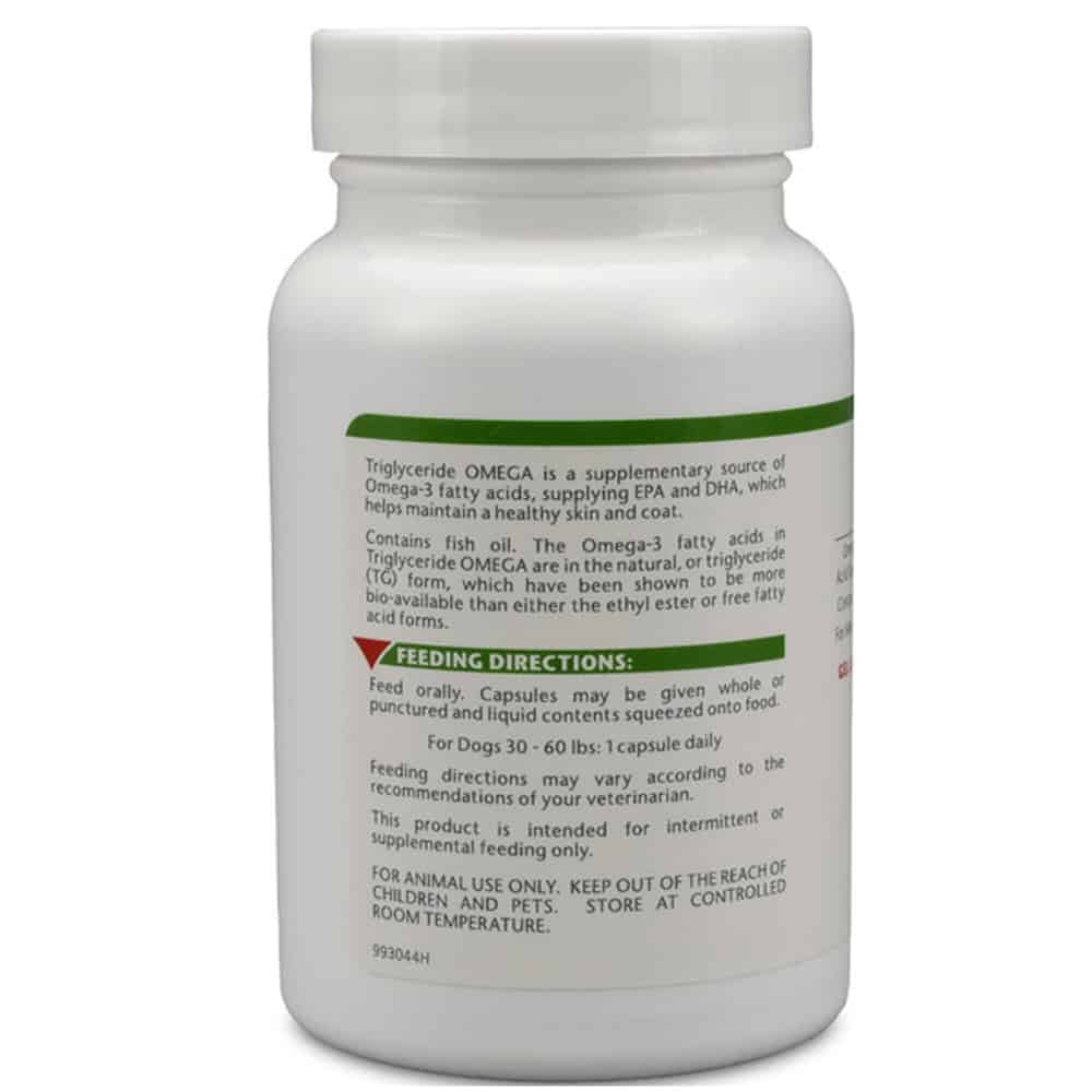 Triglyceride Omega for dogs and cats supplies EPA and DHA omega-3 fatty acids, which helps maintain a healthy skin and coat. Omega-3 fatty acids are also used to support kidney and heart function and may also support joint health.