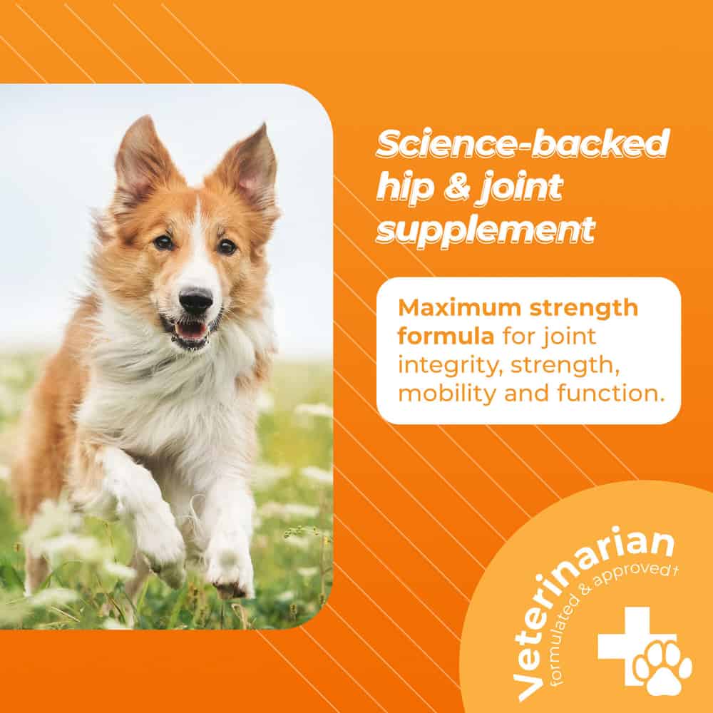 • Highest strength formula, recommended for working dog breeds, active dogs and senior dogs showing signs of joint health problems
