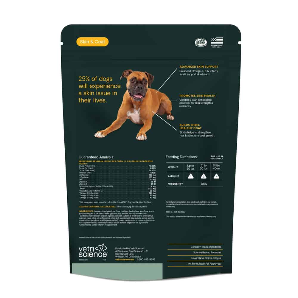 VetriScience Extra Strength Healthy Skin & Coat Chews for Dogs Directions: