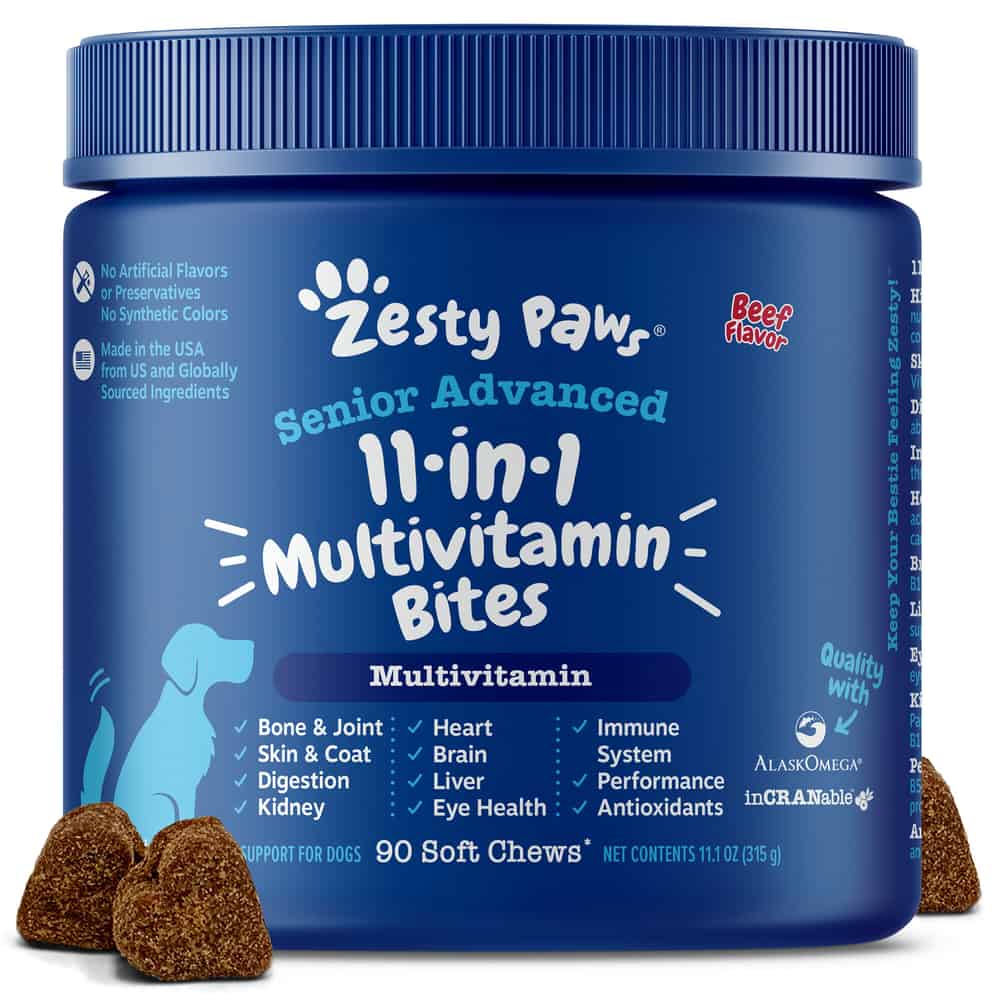 How does Zesty Paws Senior Advanced 11-in-1 Multivitamin Bites Soft Chew Supplement for Dogs work?
