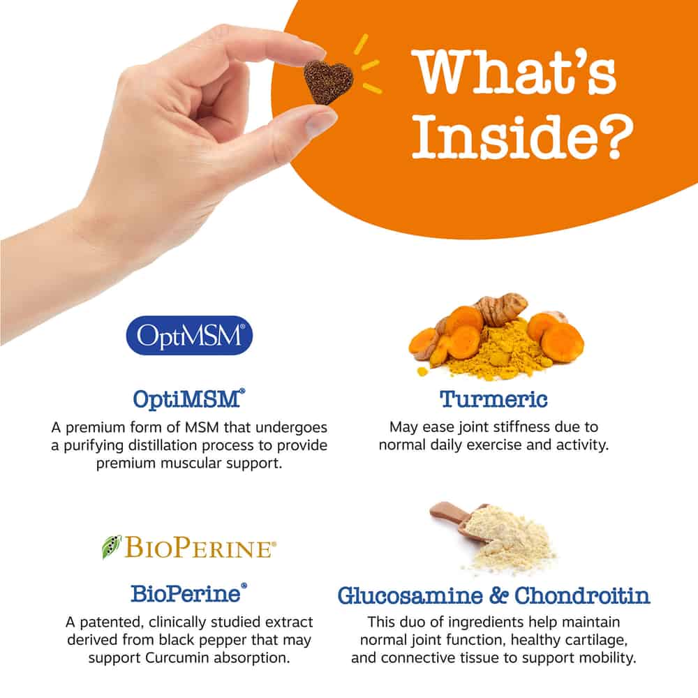 - Treat Your Pup to Pawsome Ingredients – Turmeric, Green Lipped Mussel, and Vitamins C & E are the strength of this chewable by supporting joint health and connective tissue formation.