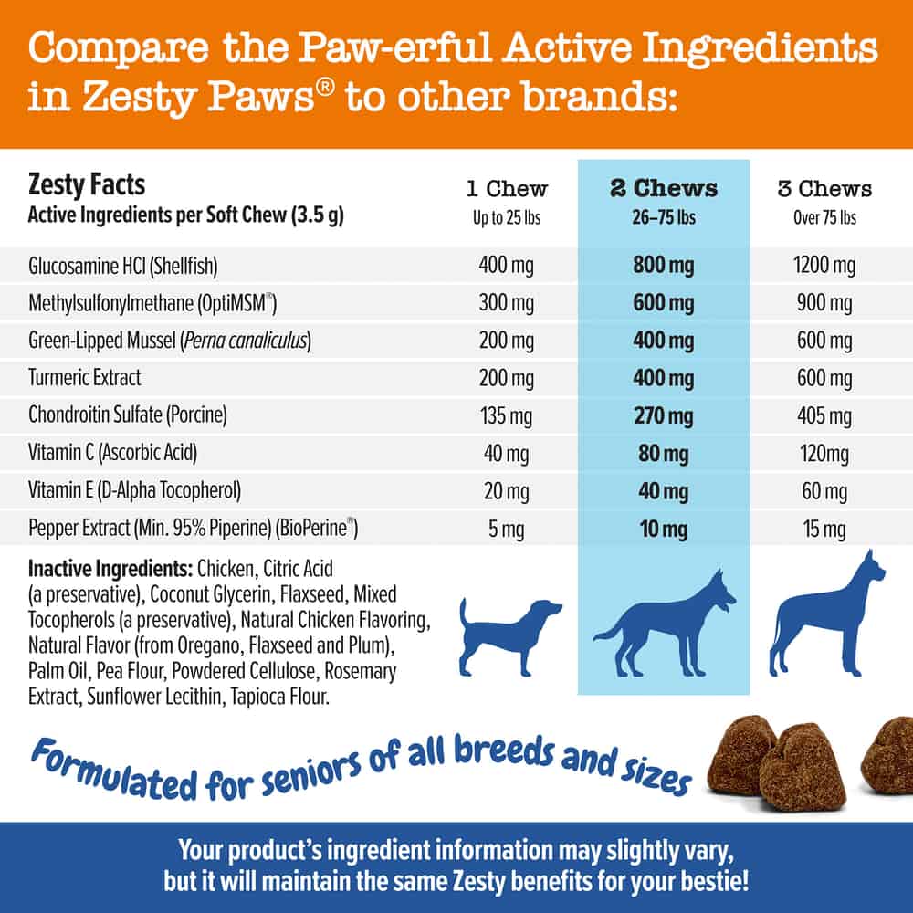 Zesty Paws Senior Advanced Mobility Bites™ Chicken Flavored Soft Chew Hip & Joint Supplement for Dogs Ingredients: