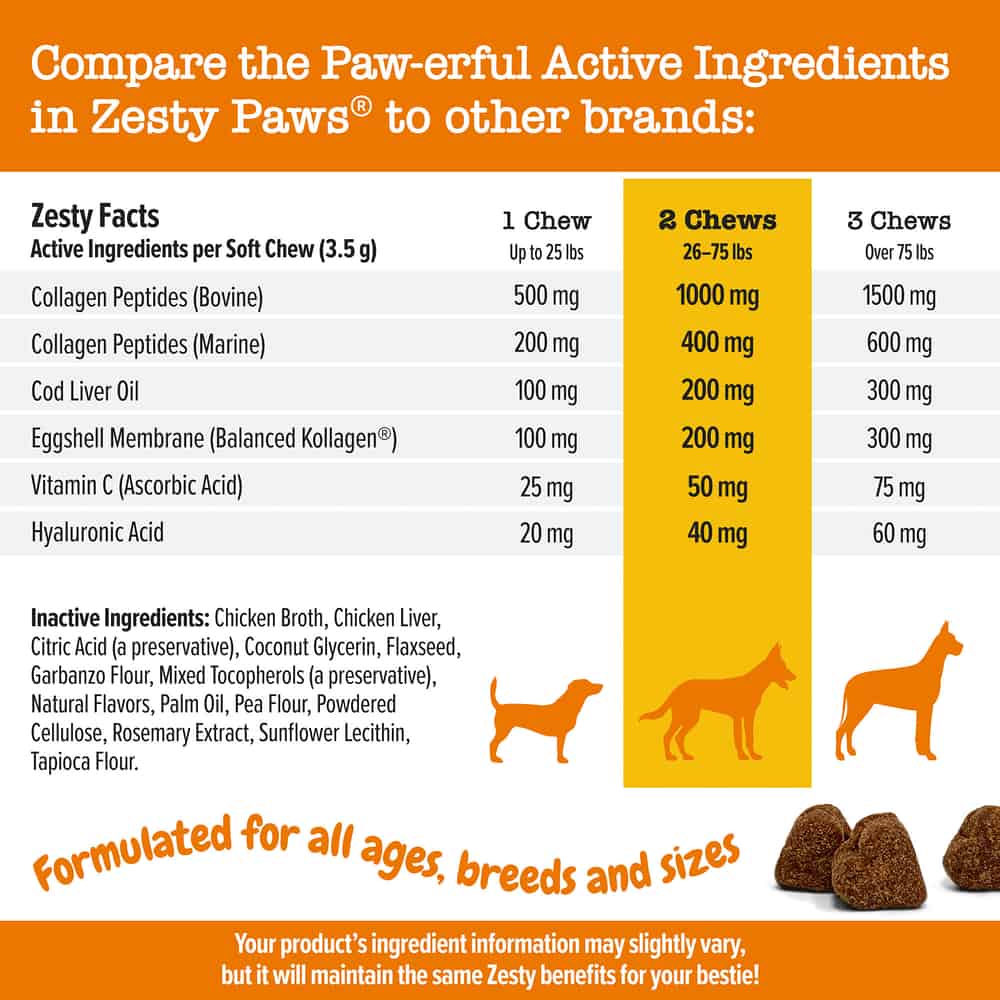 Zesty Paws Multi-Collagen Bites Soft Chews Multivitamin for Dogs Dosage: