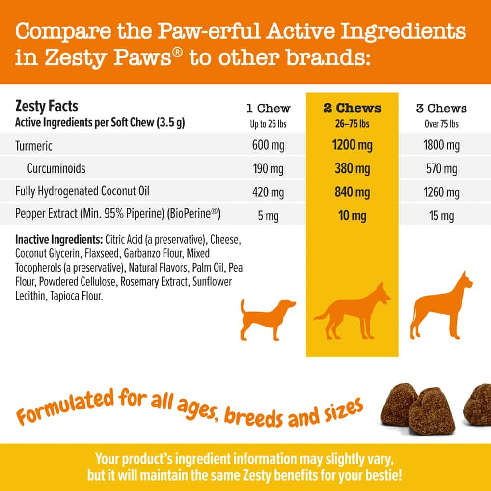 Zesty Paws Turmeric Curcumin Bites Soft Chews Multivitamin for Dogs Ingredients: