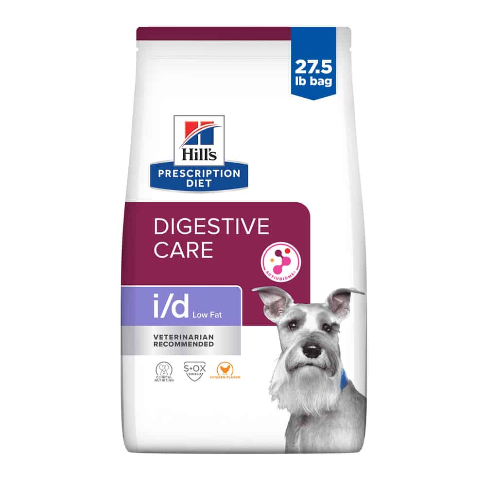 • Hill's Prescription Diet i/d Low Fat Digestive Care Chicken Flavor Dry Dog Food is specially formulated by Hill’s nutritionists and veterinarians to support your dog’s digestive health