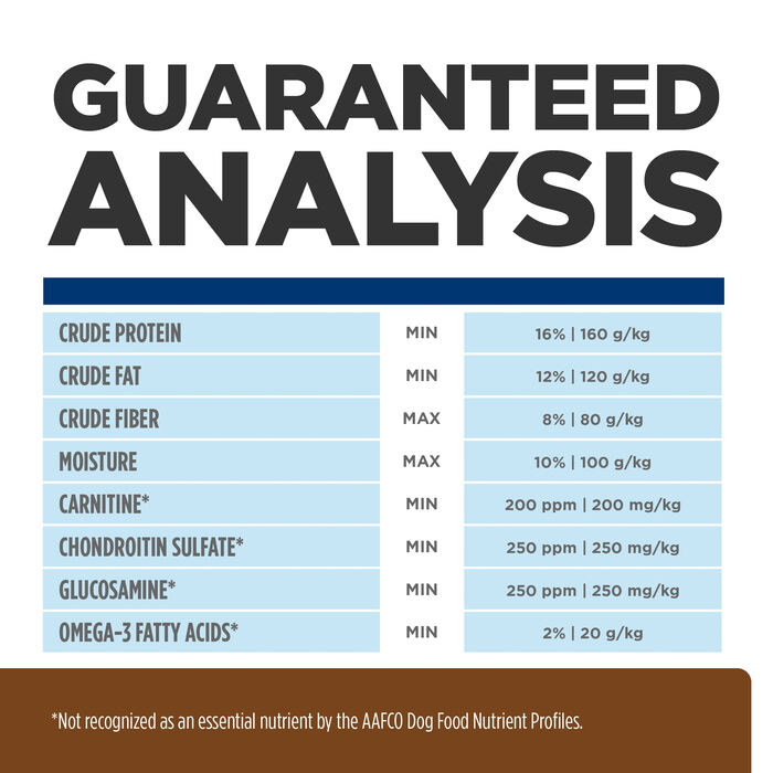 Enriched with omega-3 fatty acids, glucosamine & chondroitin sulfate to help support joint health. It also includes clinically proven antioxidants and added L-carnitine. Hill's Prescription Diet j/d Dry Dog Food is a complete and balanced food that provides all the nutrition your dog needs.