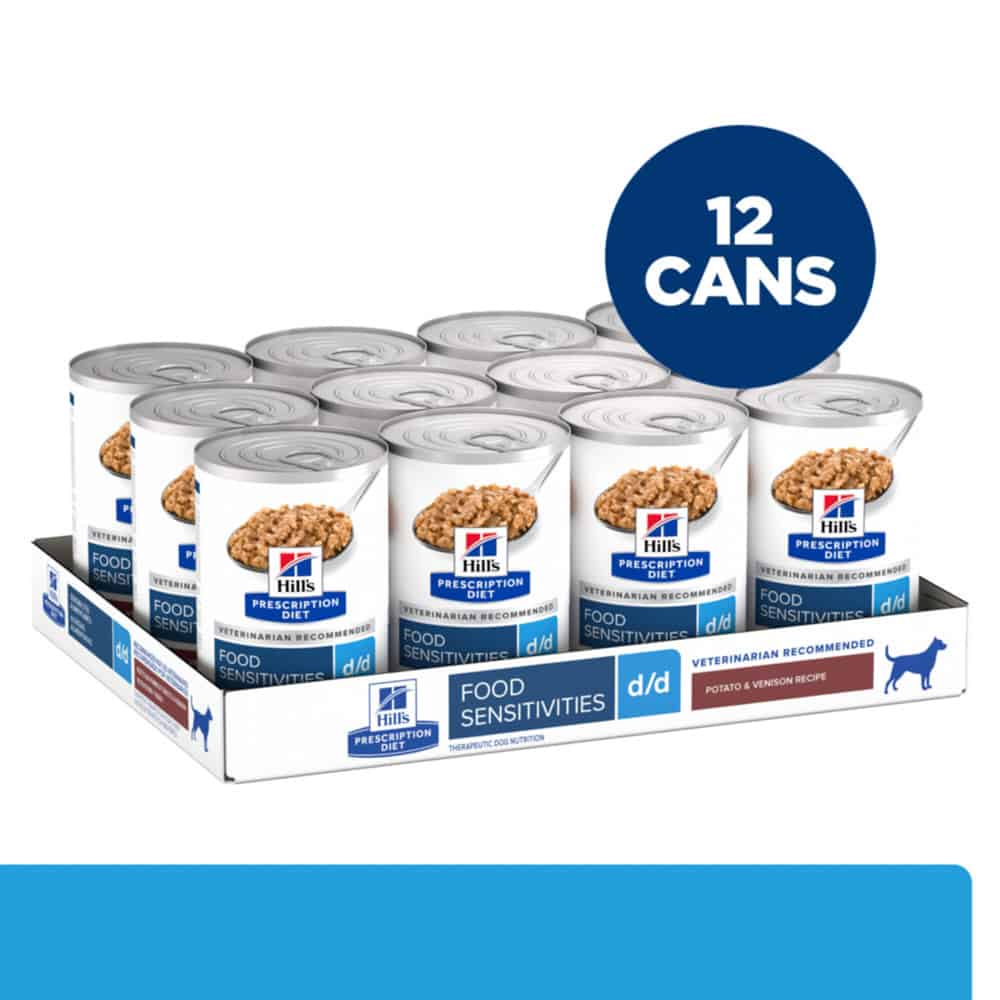 - Hill's Prescription Diet d/d Food Sensitivities Potato & Venison Recipe Wet Dog Food is specially formulated by Hill’s nutritionists and veterinarians to support your dog’s food sensitivities
