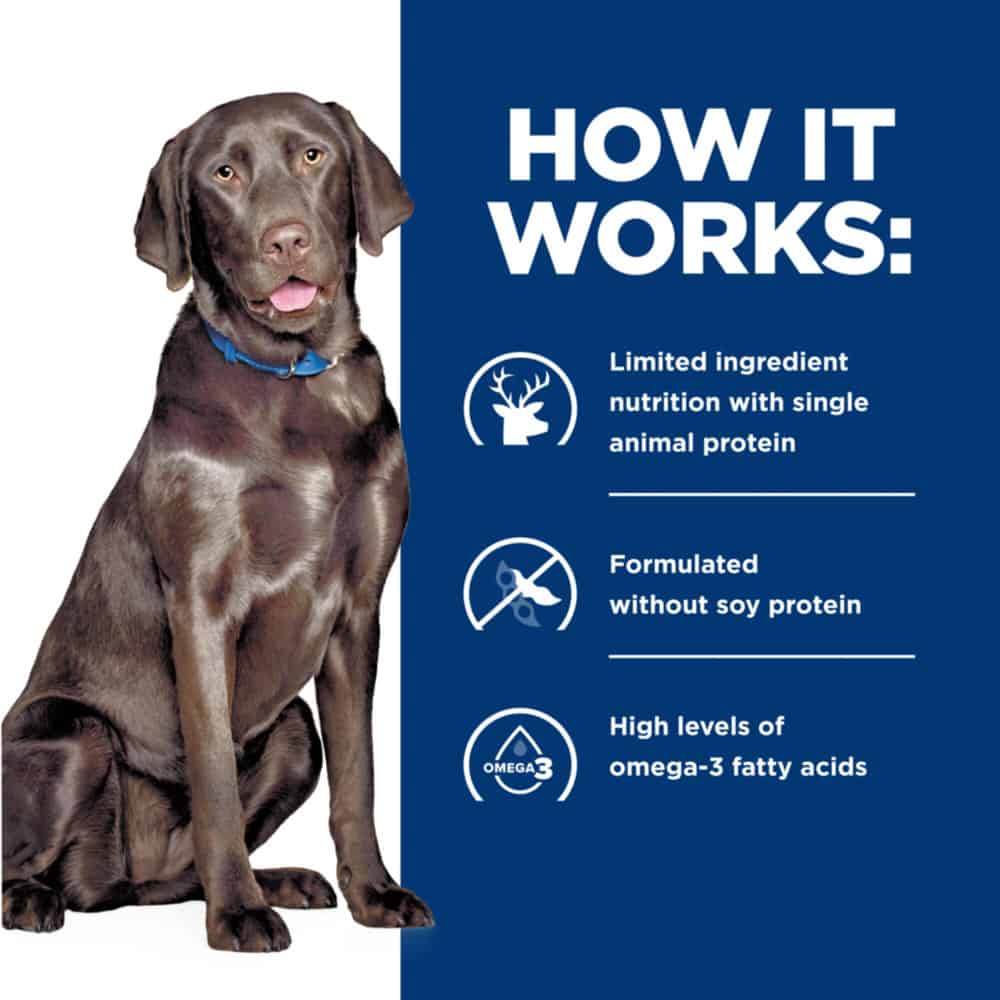 How does Hill's Prescription Diet d/d Food Sensitivities Potato & Venison Recipe Wet Dog Food work?