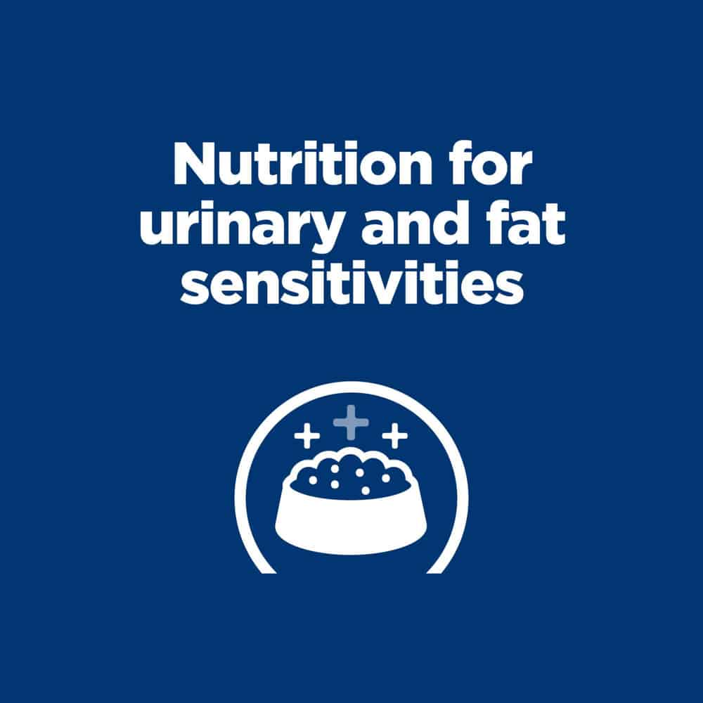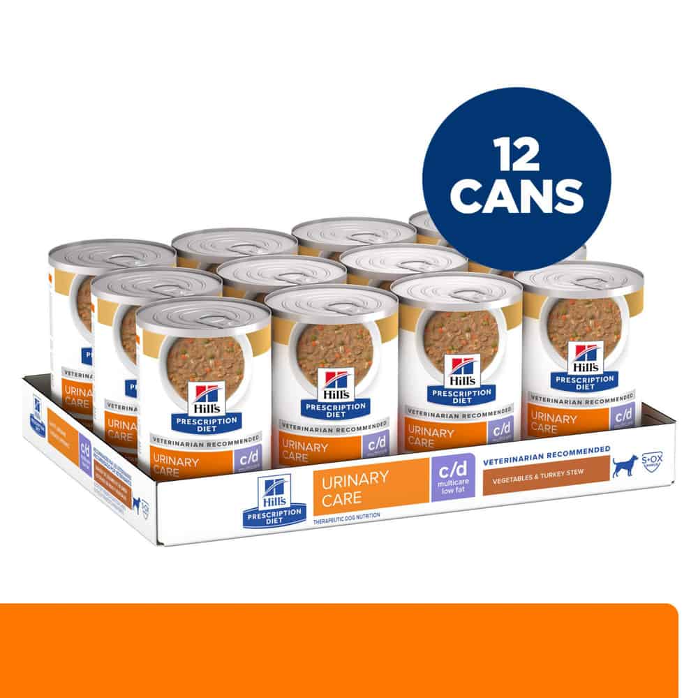 Hill's Prescription Diet c/d Multicare Low Fat is clinical nutrition for dogs who have or may have fat sensitivities, specially formulated to help dissolve struvite bladder stones It’s made in the USA with global ingredients you can trust, and was developed by Hill’s nutritionists and veterinarians.Please consult your veterinarian for further information on how Prescription Diet foods can help your dog continue to enjoy a happy and active life.