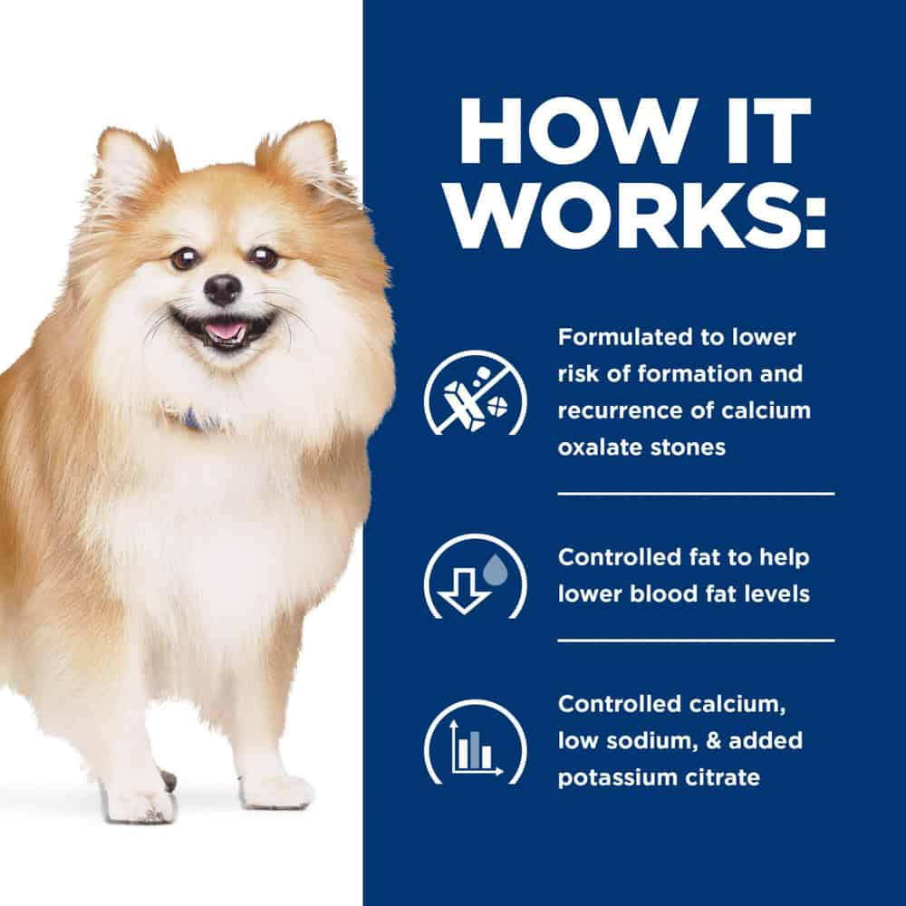 Hill's Prescription Diet c/d Multicare Low Fat Urinary Care Vegetables & Turkey Stew Recipe Wet Dog Food works by helping to lower the concentration of building blocks for bladder stones. It accomplishes this with controlled levels of calcium and sodium, along with added potassium citrate, while also helping to lower blood fat levels.