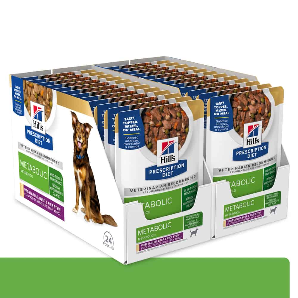 - Hill's Prescription Diet Metabolic Weight Management Vegetables, Beef and Rice Wet Dog Food clinical nutrition helps dogs lose weight and keep the lost weight off naturally by activating their unique metabolism