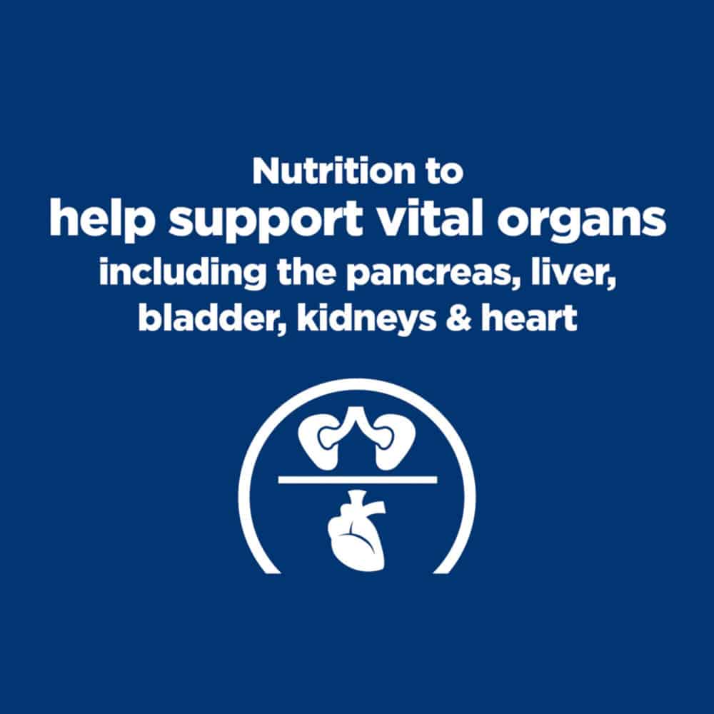 How does Hill's Prescription Diet Multi-Organ Support Chicken Dry Dog Food work?