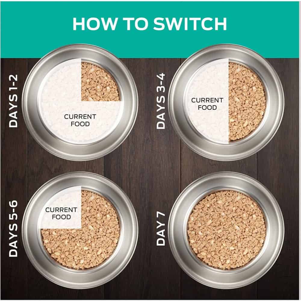 - With your veterinarian's approval, offer increasing amounts of the new food with decreasing amounts of the old food.