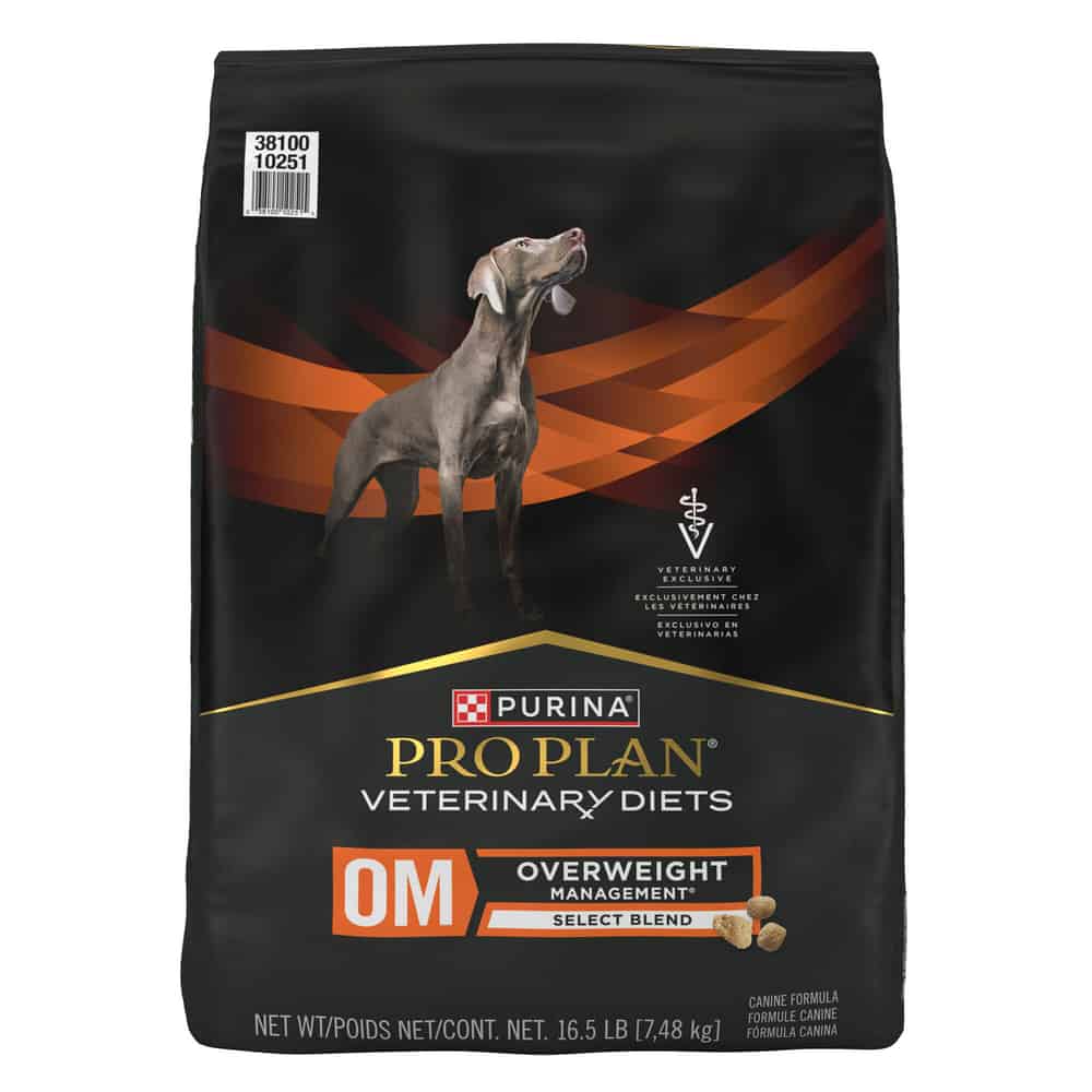 See why switching to a weight management dry dog food doesn't have to mean sacrificing taste with Purina Pro Plan Veterinary Diets OM Select Blend Overweight Management With Chicken Canine Formula dog kibble. This healthy weight dog food is specially formulated to help overweight or obese dogs lose weight while maintaining lean muscle.