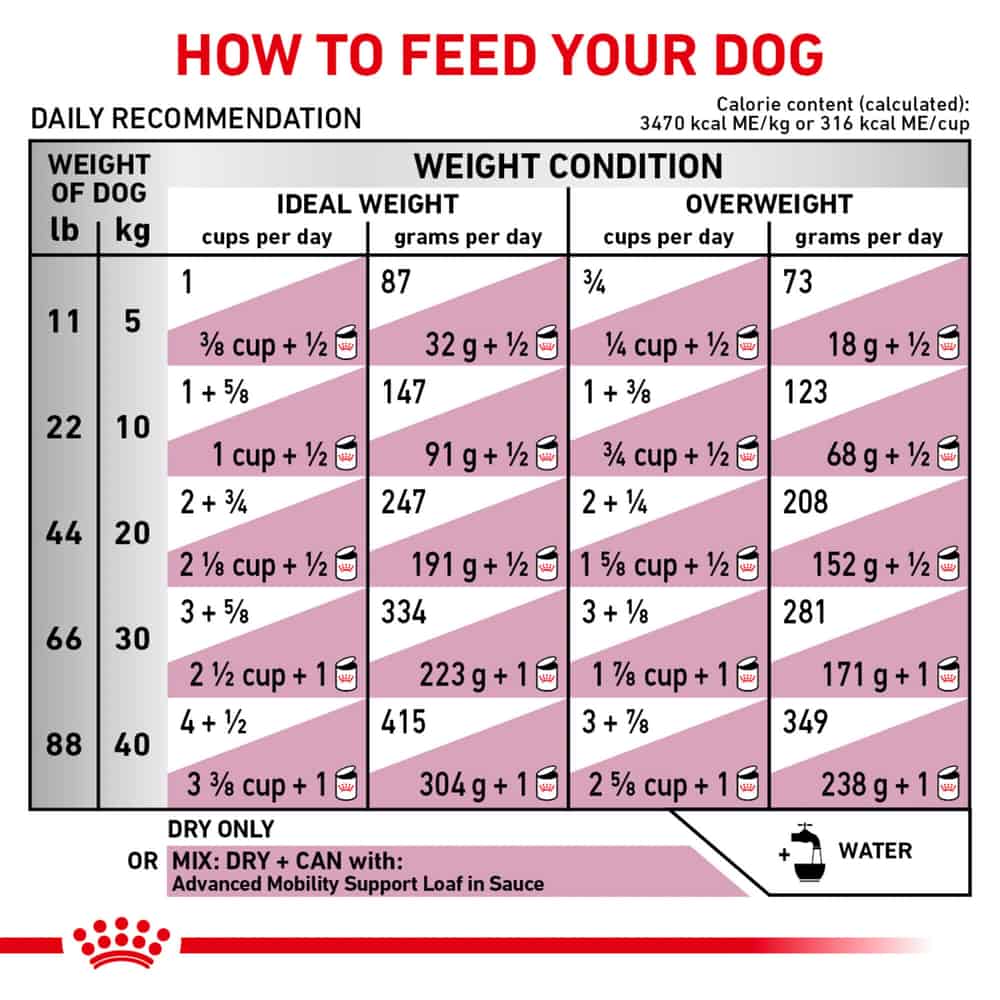 Royal Canin Veterinary Diet Canine Advanced Mobility Support Dry Dog Food Dosage: