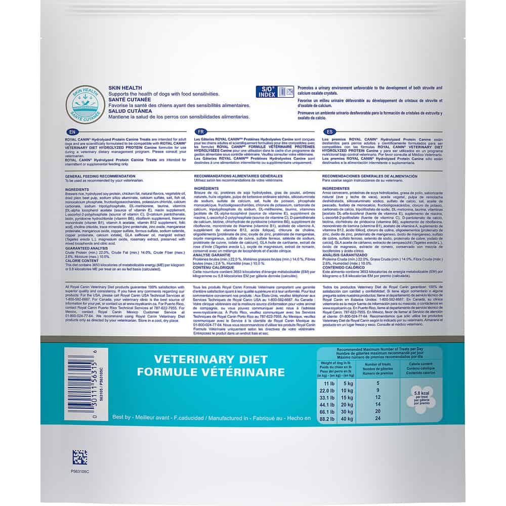- Royal Canin Hydrolyzed Protein Canine Treats are intended for intermittent or supplemental feeding only.