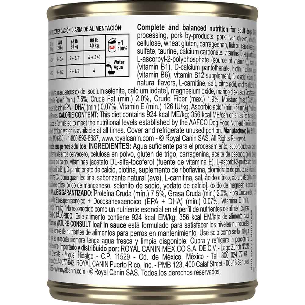 Royal Canin Veterinary Diet Canine Mature Consult Loaf in Sauce Wet Dog Food Ingredients: