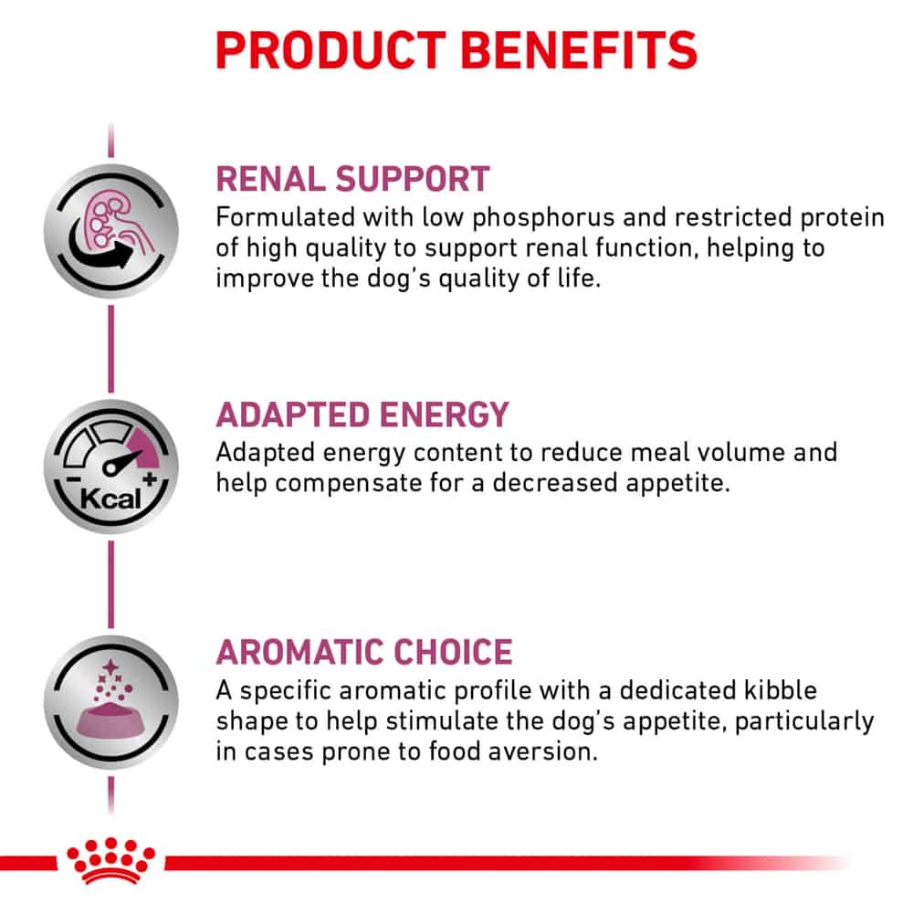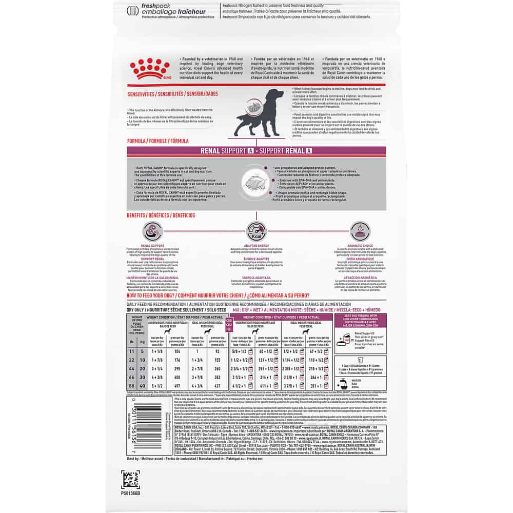 - SUPPORTS KIDNEY HEALTH: Royal Canin Veterinary Diet Renal Support A is a veterinary-exclusive dry dog food to support dog kidney health