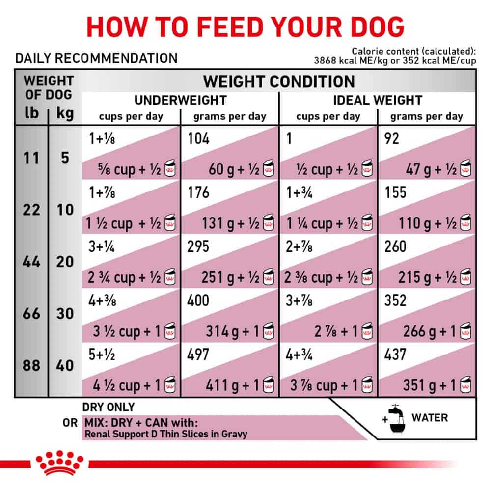 - When feeding Dry + Wet, this food is best mixed with Royal Canin Veterinary Diet Canine Renal Support D Thin Slices in Gravy Wet Dog Food.