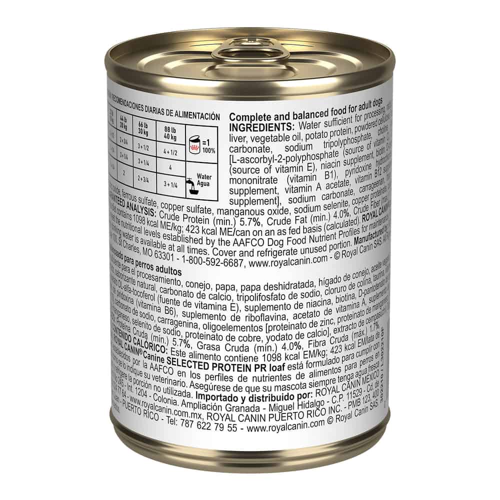- MADE WITH POTATO & RABBIT: Royal Canin Selected Protein Adult PR Wet Dog Food is a veterinary-exclusive diet made with potato and rabbit for dogs with food sensitivities