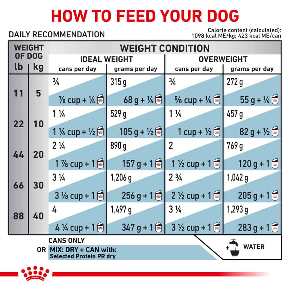- Royal Canin recommends that your dog be fed 2 to 4 equal portions of the diet per day.