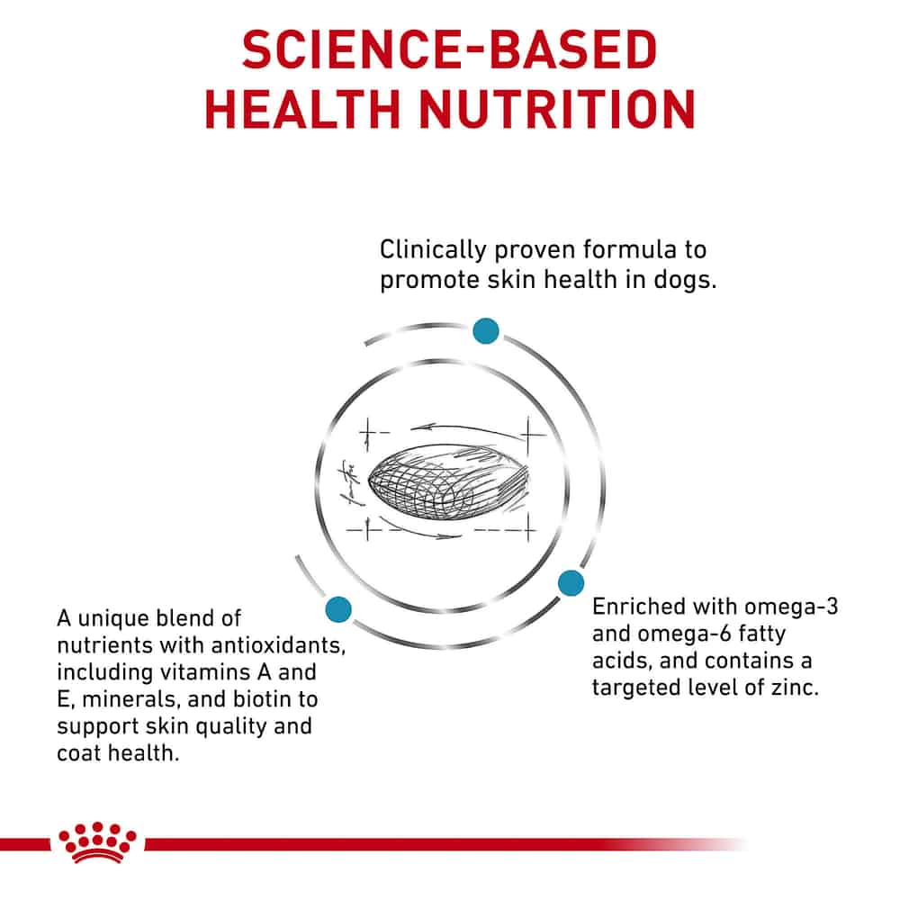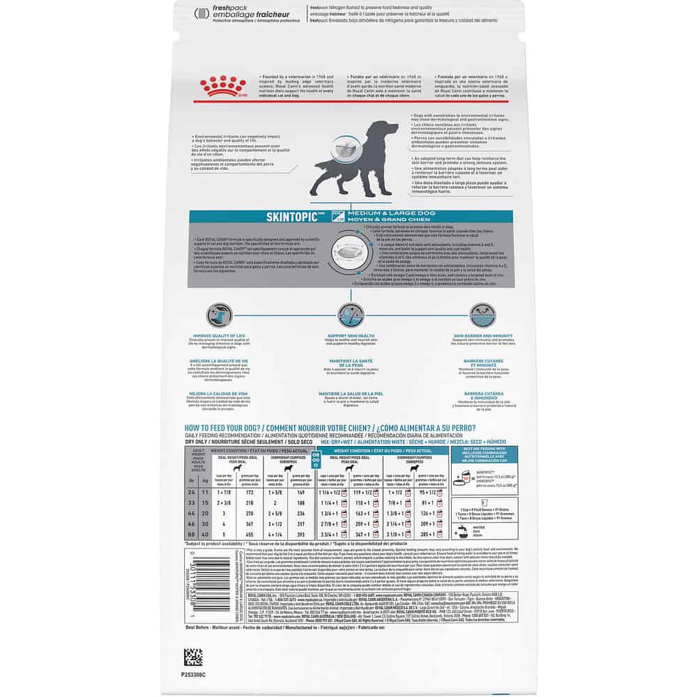 Royal Canin Skintopic Adult Dry Dog Food for medium and large breed dogs is clinically proven to promote skin health in dogs with environmental sensitivities.This veterinary exclusive formula requires a prescription. Consult your veterinarian for more information about this product for your pet.