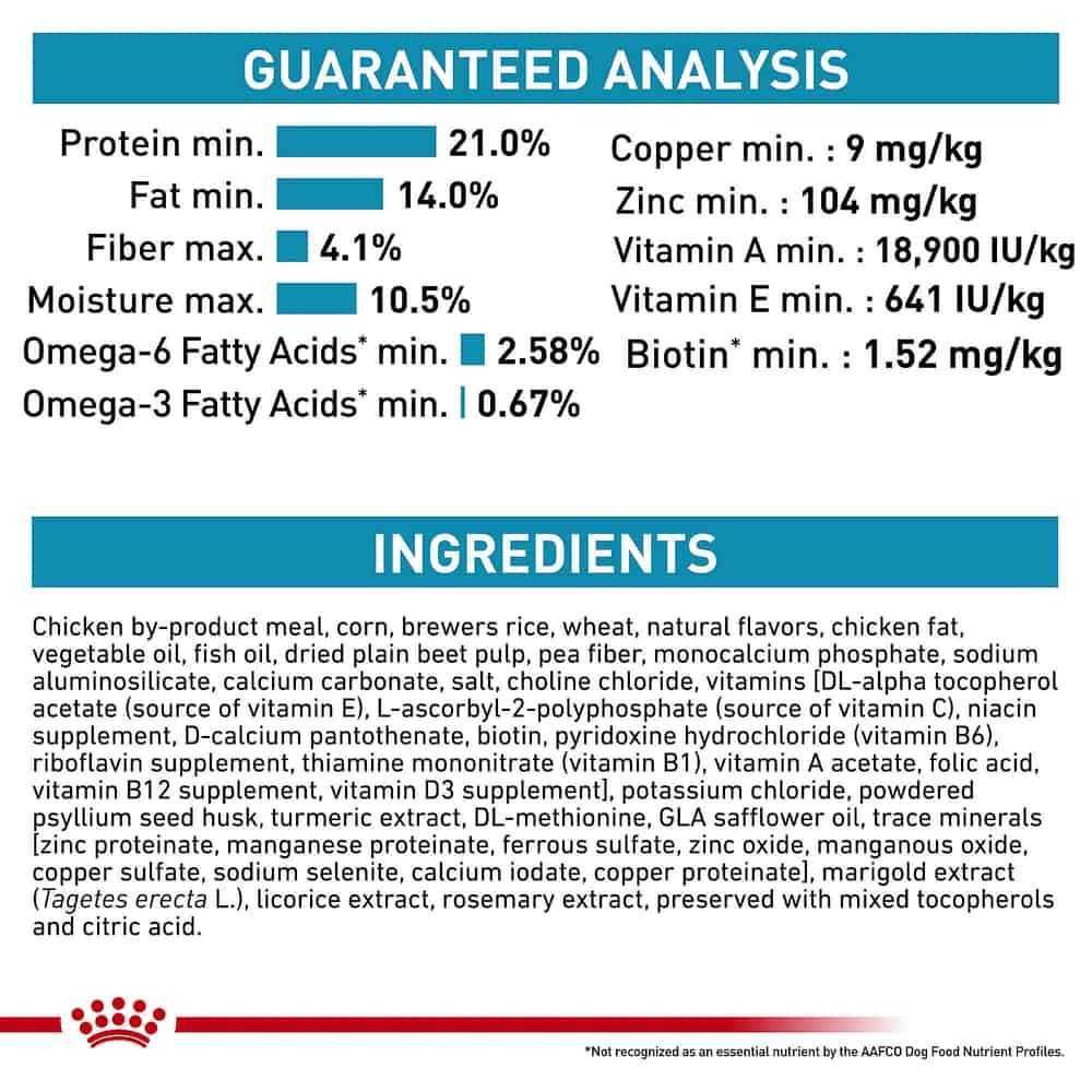 Royal Canin Veterinary Diet Canine Skintopic Medium & Large Breed Adult Dry Dog Food Ingredients: