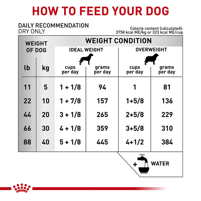 - Consult your veterinarian for specific feeding guidelines for your dog.