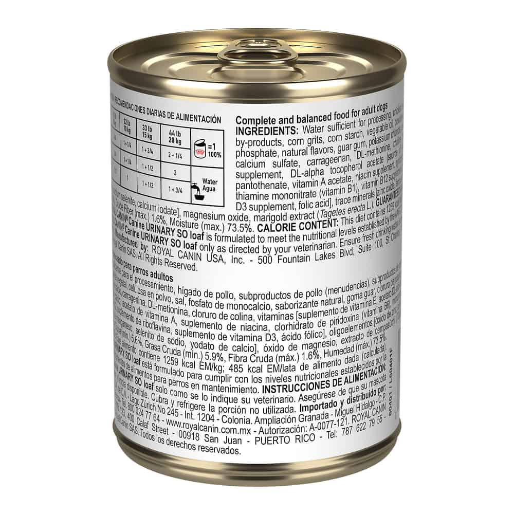 Royal Canin Urinary SO is a veterinary-exclusive Wet Dog Food developed to nutritionally support your adult dog's urinary tract and bladder health. This formula promotes a urinary environment unfavorable to the formation of both struvite and calcium oxalate crystals.