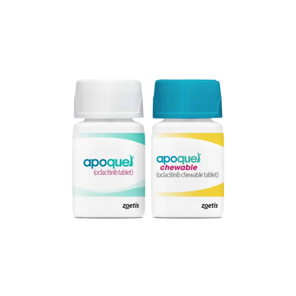 IMPORTANT SAFETY INFORMATION: Do not use Apoquel or Apoquel Chewable (oclacitinib) Tablets for Dogs in dogs less than 12 months of age or in dogs with skin infections. Apoquel Chewable (oclacitinib) Tablets for Dogs may increase the chances of developing serious infections, and may cause existing parasitic skin infestations or pre-existing cancers to get worse. Consider the risks and benefits of treatment in dogs with a history of recurrence of these conditions. Clinical studies and post-approval evaluations identified both benign and malignant neoplastic conditions. Apoquel Chewable (oclacitinib) Tablets for Dogss have not been evaluated for use alongside certain medications, including those frequently prescribed for skin conditions (like corticosteroids and cyclosporine.) Avoid using in dogs that are breeding, pregnant, or nursing. Common side effects include vomiting and diarrhea. Apoquel Chewable (oclacitinib) Tablets for Dogss can be used safely alongside many common medications such as including parasiticides, antibiotics, topical products for bacterial skin infections, and vaccines.