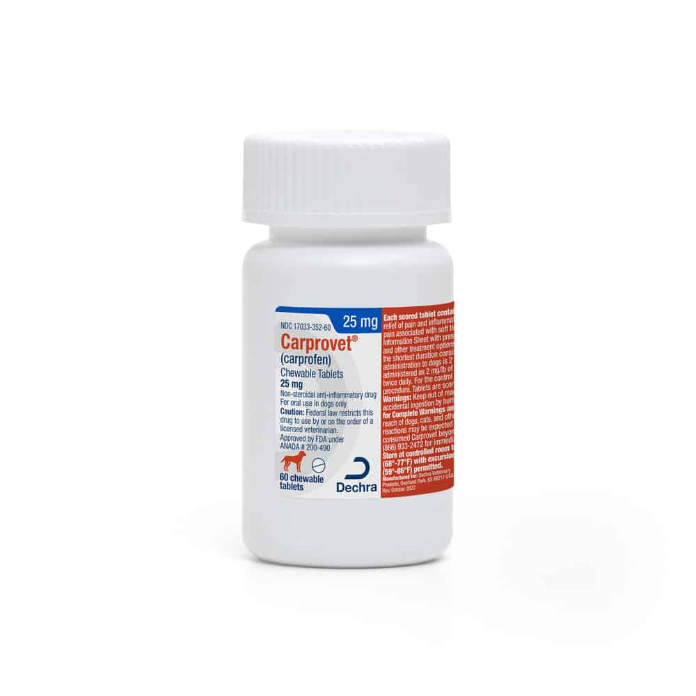 Carprovet Chewable Tablets are indicated for the relief of pain and inflammation associated with osteoarthritis and for the control of postoperative pain associated with soft tissue and orthopedic surgeries in dogs.