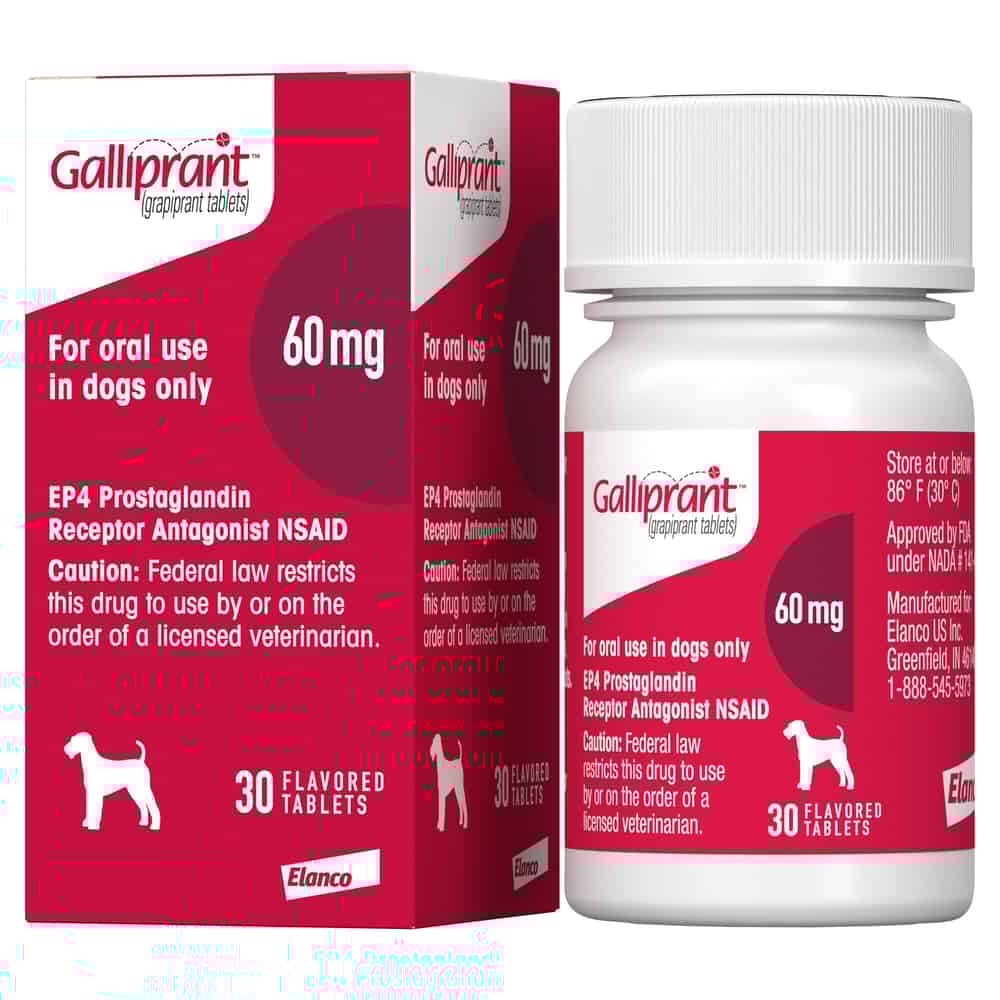 Galliprant (grapiprant tablets) is a non-steroidal, anti-inflammatory drug for the control of pain and inflammation due to osteoarthritis in dogs. It is specifically formulated to safely treat canine osteoarthritis (OA) from its earliest diagnosed stages. In fact, dogs as young as 9 months of age have been safely treated with Galliprant (grapiprant tablets) for early stages of osteoarthritis. Galliprant (grapiprant tablets) is a new class of anti-inflammatory that targets pain and helps dogs with OA remain comfortable and active. It specifically blocks the primary mediator of canine OA pain and inflammation (EP4 receptor) while reducing the impact on gastrointestinal, kidney, and liver homeostasis. The pork liver-flavored tablets are scored for easy administration. Galliprant (grapiprant tablets) requires a prescription from your veterinarian.