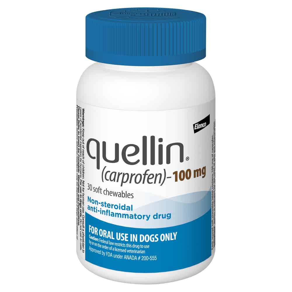 Quellin is a non-steroidal anti-inflammatory drug (NSAID) used to reduce pain and inflammation due to osteoarthritis and pain following surgery in dogs. Quellin is a prescription drug for dogs. It is available in a soft chewable tablet and is given to dogs by mouth.