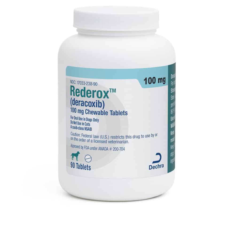 Rederox® (deracoxib) Chewable Tablets control pain and inflammation associated with Osteoarthritis, postoperative pain and inflammation associated with orthopedic surgery, and postoperative pain and inflammation associated with dental surgery in dogs.
