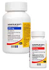 Simplicef is a prescription medication FDA-approved for use in dogs. Simplicef is available as 100 mg elliptical scored tablets and 200 mg tablets that can either be elliptical, unscored tablets marked 5229 or capsule-shaped, scored tablets marked 5229. The usual dose of Simplicef in dogs is 2.3-4.5 mg/lb, given by mouth, once a day for 5 to 7 days or 2 to 3 days beyond the cessation of clinical signs, up to a maximum of 28 days. Simplicef should be given with food to increase absorption by the body. Give all of the Simplicef that is prescribed for your pet. Symptoms may begin to improve before the infection is completely treated.