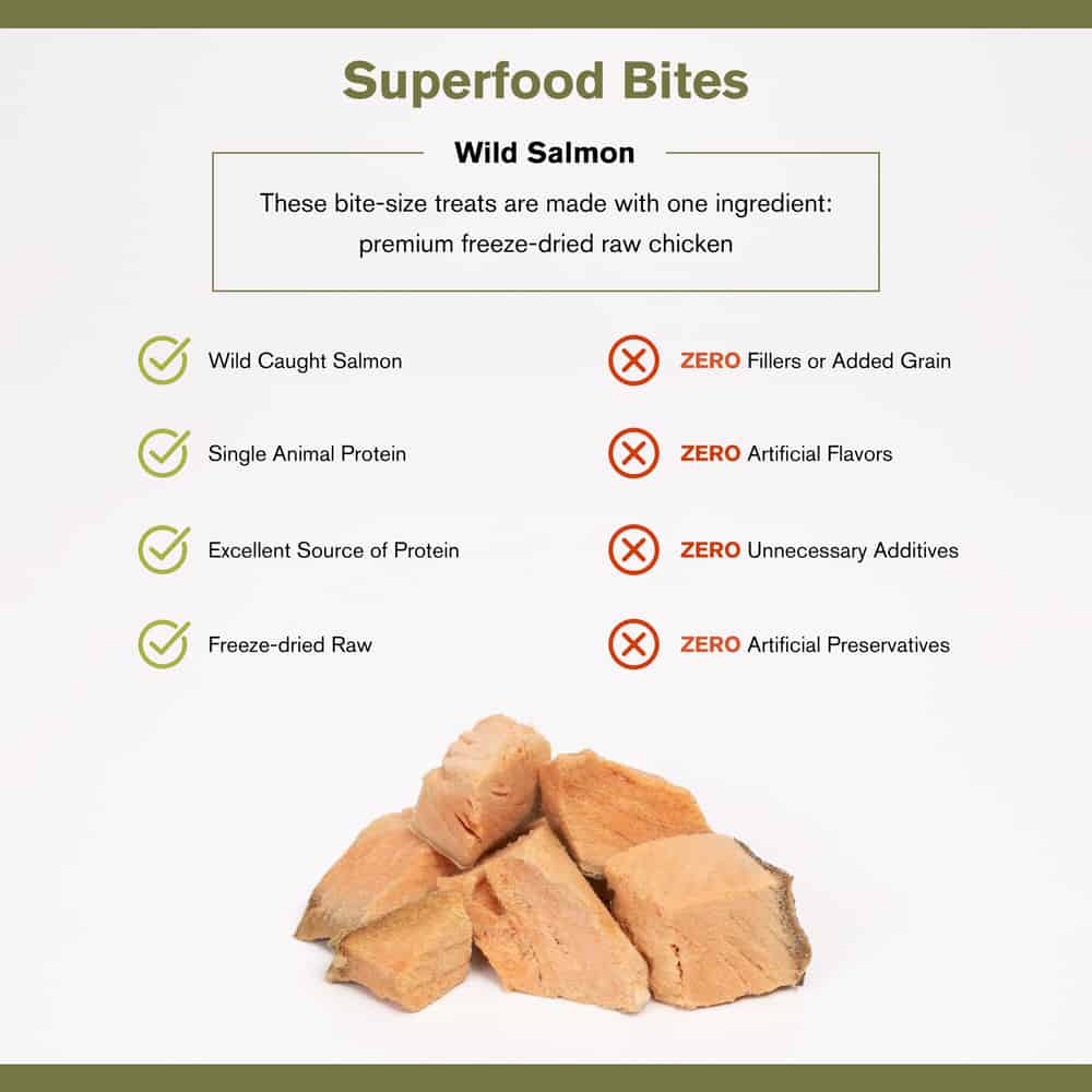Badlands Ranch Superfood Bites 100% Salmon Freeze Dried Raw Dog Treats Ingredients: