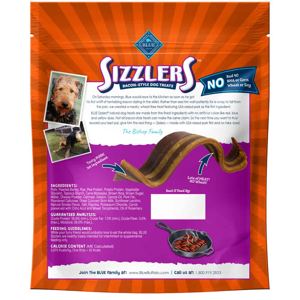 - While your furry friend would probably love to eat the whole bag, BLUE Sizzlers are healthy treats intended for intermittent or supplemental feeding only.