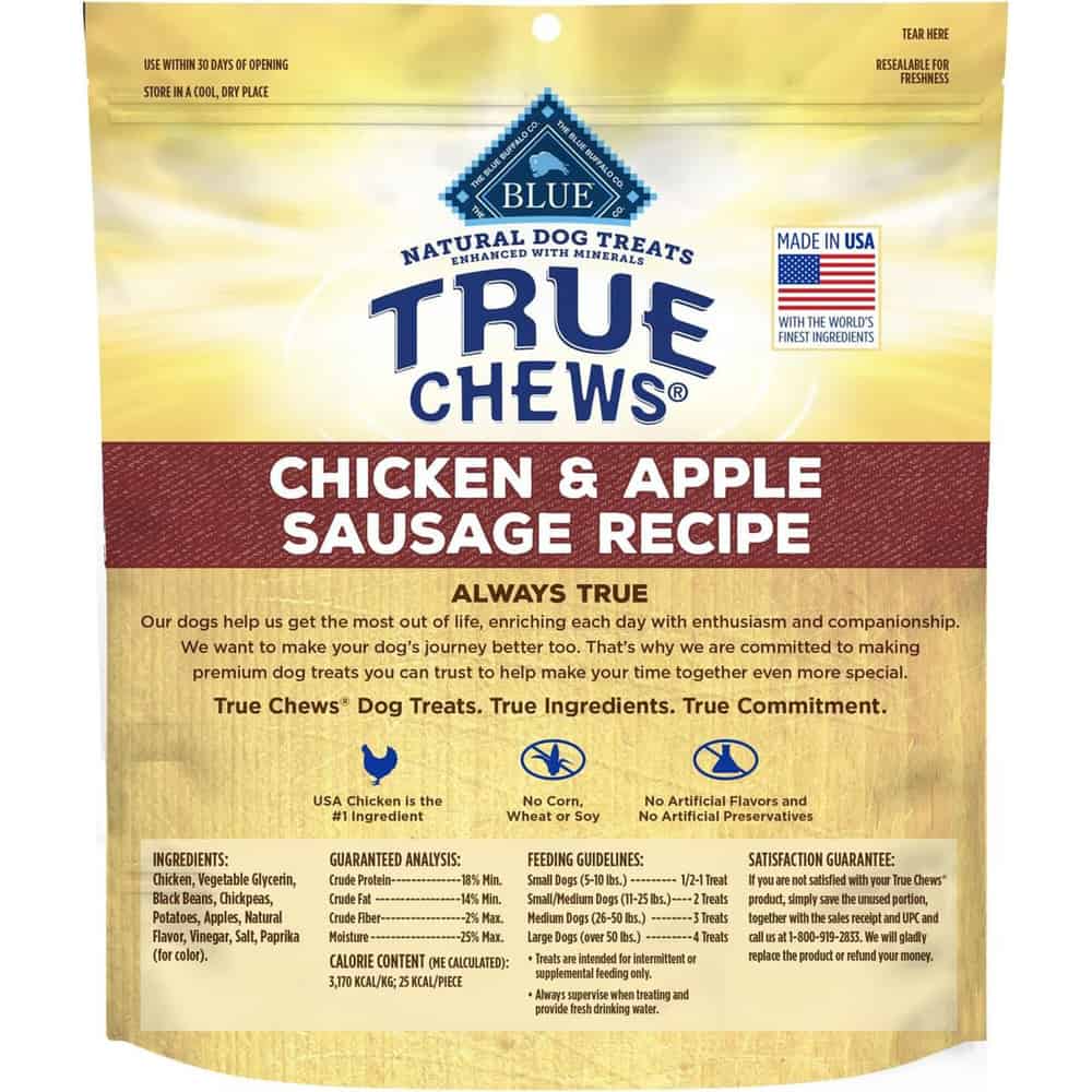 What is Blue Buffalo True Chews Dog Treats - Made in the USA with Natural Ingredients - Chicken and Apple Sausage Recipe?