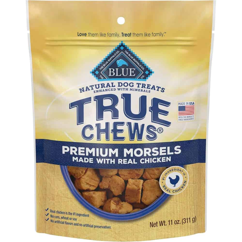 - REAL CHICKEN FIRST: BLUE True Chews Premium Morsels are made with delicious chicken as the first ingredient to keep tails wagging