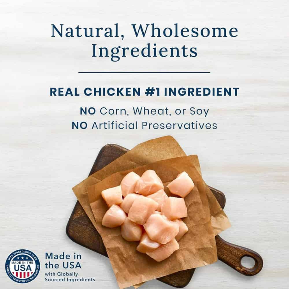 - ONLY WHOLESOME INGREDIENTS: BLUE foods and treats are formulated with only the finest natural ingredients, with no chicken by-product meals, no corn, wheat, or soy, and no artificial flavors or preservatives