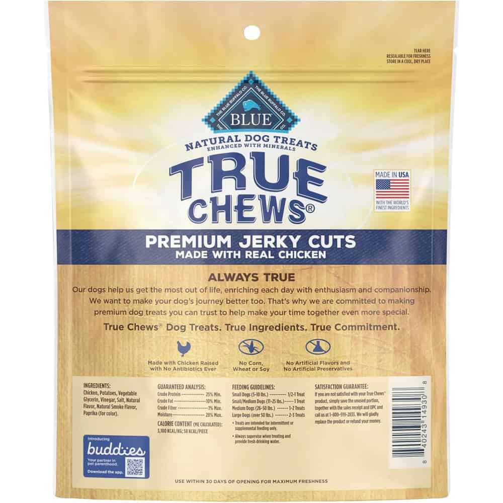 Blue Buffalo True Chews Premium Jerky Cuts Dog Treats - Made in the USA with Natural Ingredients - Chicken Dosage: