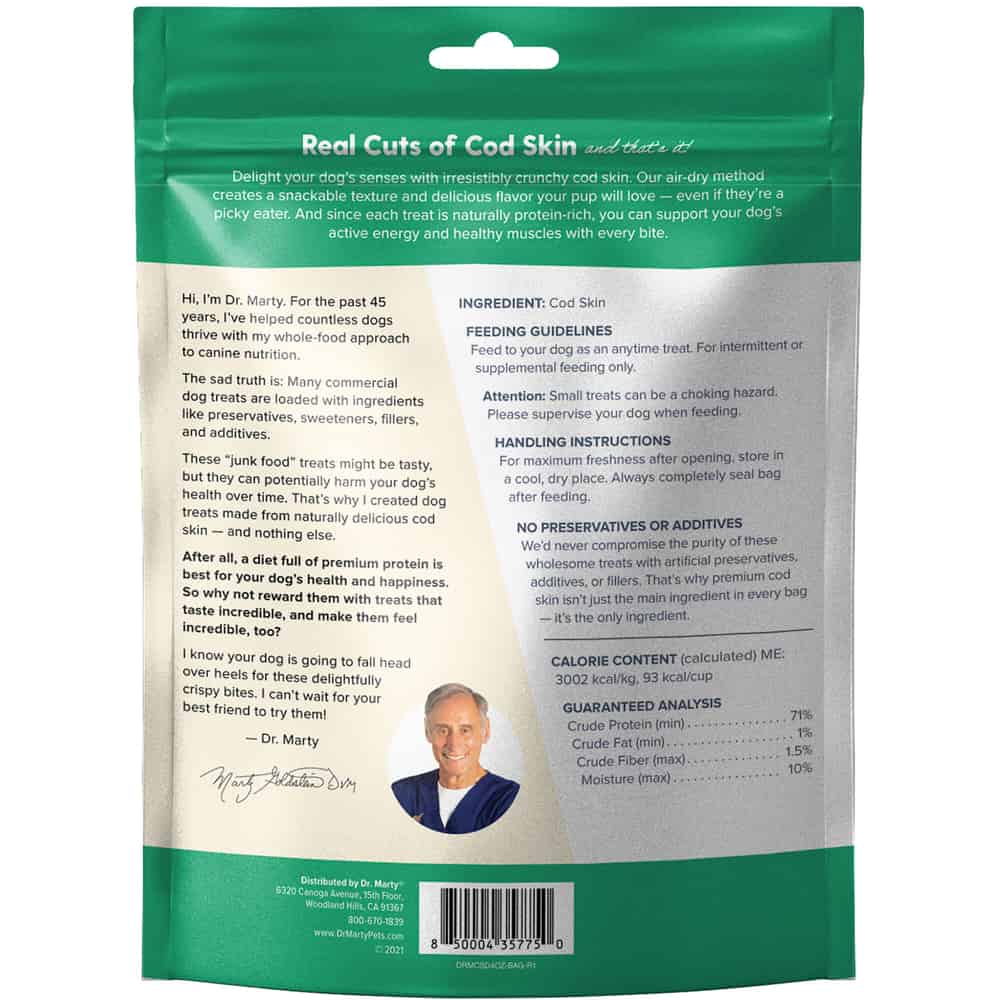 Dr. Marty Cod Crispies 100% Air-Dried Wild-Caught Cod Skin Dog Treats Ingredients: