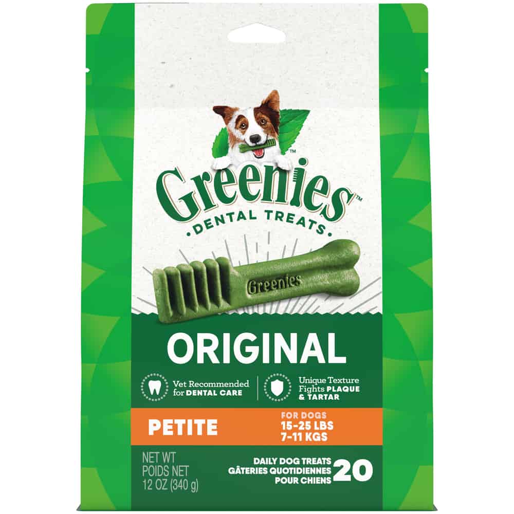 - Greenies Original Petite Natural Dental Dog Treats are for Small Breed Dogs weighing 15-25 lbs.