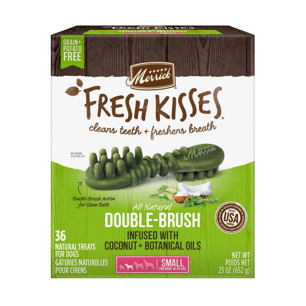• Merrick dog treats that feature a unique double brush design are perfect for dog teeth cleaning and as a dog breath freshener like no other dog dental treats