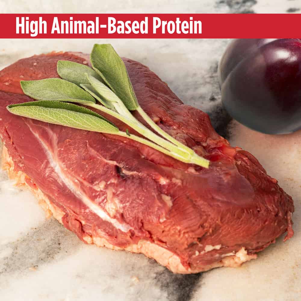 - SINGLE ANIMAL PROTEIN: 75% Duck, 15% Sweet Potatoes & Plums.