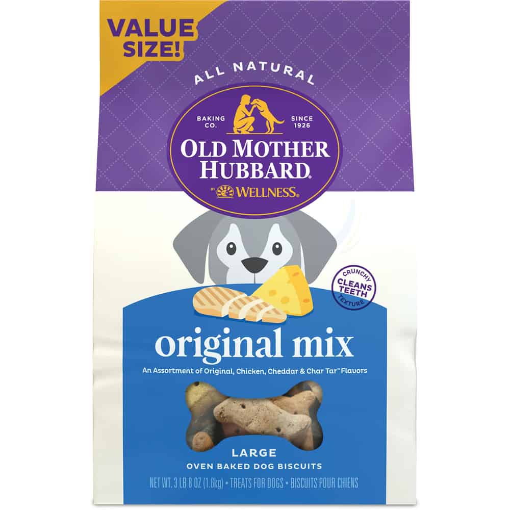 Old Mother Hubbard by Wellness, exists to nourish the life you share with your pets. They know every treating moment is a chance to show ‘em some love. That’s why their homestyle recipes start with all-natural, mouthwatering ingredients. Each biscuit is slowly oven-baked to preserve the natural flavors in varieties dogs love to catch, chew and eat. Classic great taste since 1926. These Original Mix crunchy biscuits contain an assortment of original, chicken, cheddar, and Char Tar flavors for a tasty and wholesome treat they'll love getting and you'll love giving. Treat Them Well with Old Mother Hubbard by Wellness- Treats well made because moments matter.