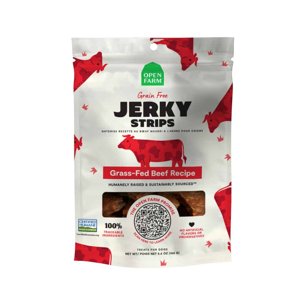 What is Open Farm Grain Free Jerky Strips Grass-Fed Beef Recipe Dog Treats?