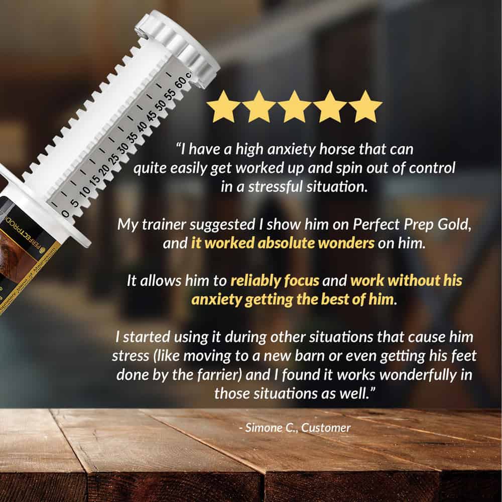 For an even greater calming effect, use Perfect Prep EQ Gold Paste in combination with Perfect Prep EQ Extreme Paste, Perfect Prep EQ Supreme and/or Perfect Prep EQ Training Day as part of the Perfect Prep Calming System.